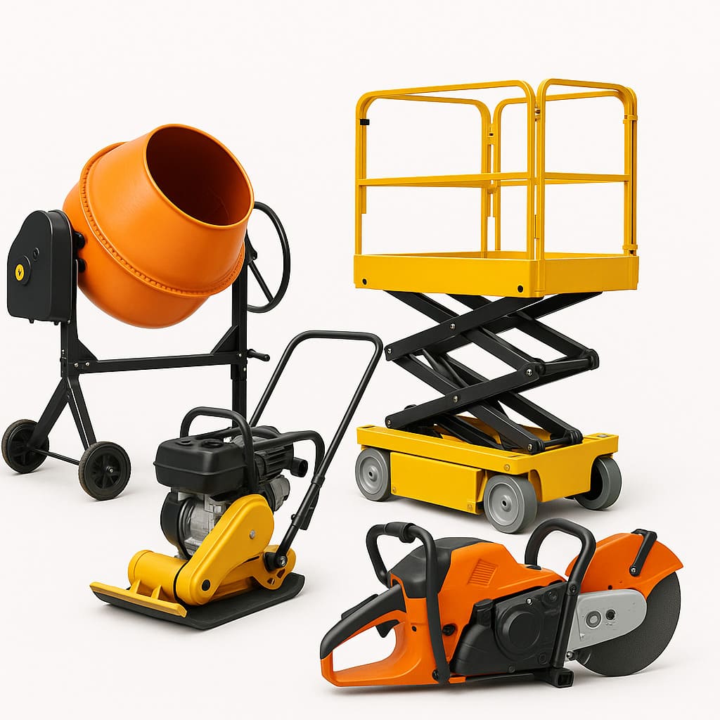 Под строительным оборудованием обычно понимают всё, что работает на стройплощадке: бетономешалки, виброплиты и трамбовки, швонарезчики, затирочные машины, штукатурные станции, компрессоры, подмости, небольшие подъемники и другое вспомогательное оснащение. Часть этих машин постоянно в движении, часть стоит в пыли и влаге, часть подключена к нестабильным сетям — отсюда и повышенное внимание к безопасности.